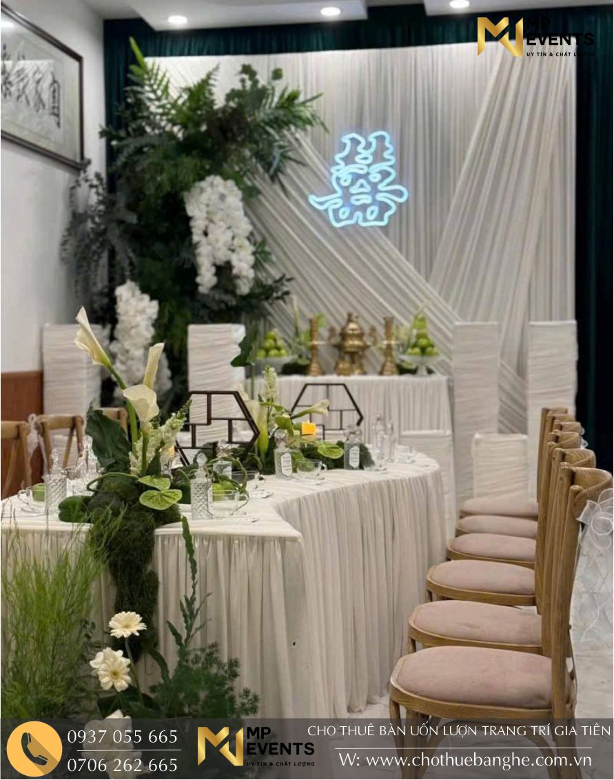 Địa chỉ cho thuê bàn ghế trang trí gia tiên dạng uốn lượn tại TPHCM