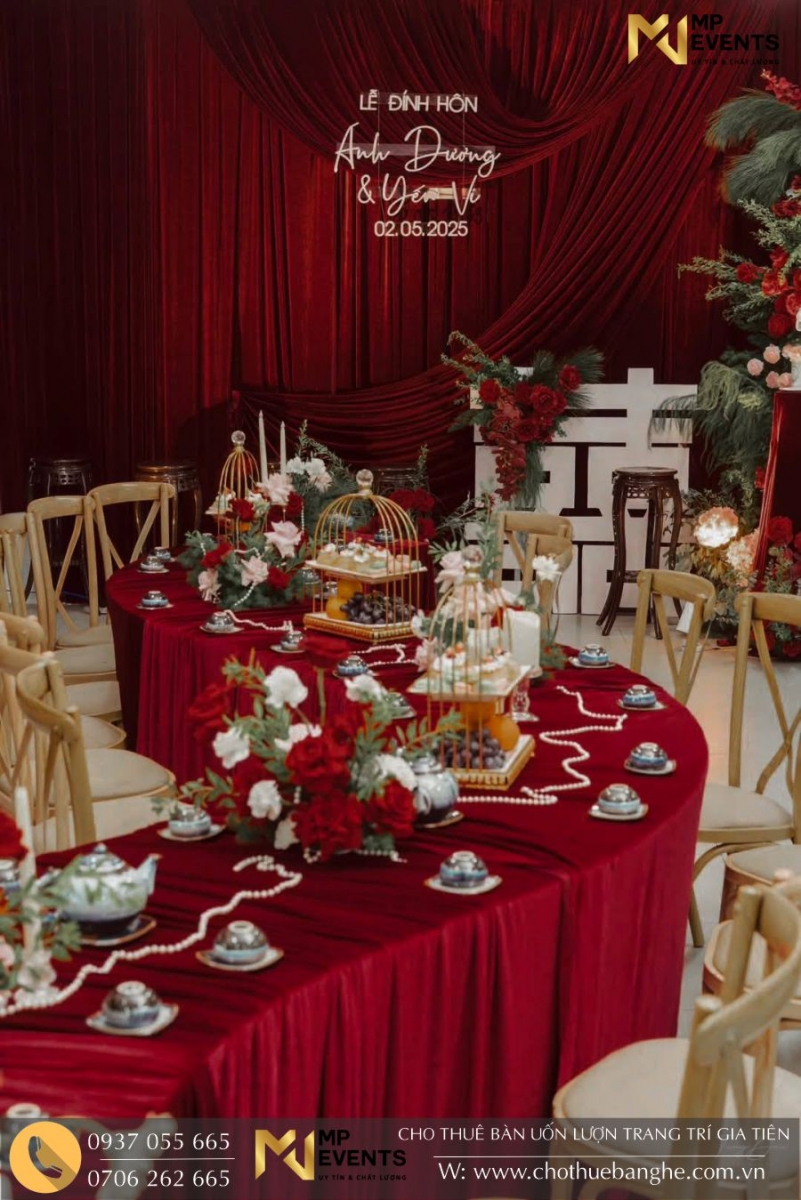 Nếu bạn đang cần tìm đơn vị cho thuê bàn ghế cưới hỏi - bàn ghế sự kiện chuyên nghiệp tại TPHCM. Hãy gọi ngay MP EVENTS để được tư vấn các mẫu bàn ghế đẹp nhất cho tiệc cưới năm 2026. Đặc biệt mẫu bàn ghế lượn sóng là một trong những sản phẩm yêu thích nhất mùa cưới cuối năm 2025 - đầu 2026.