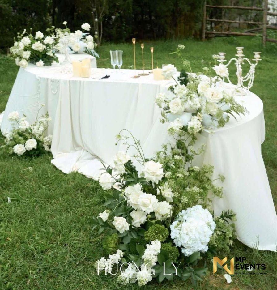 Cho thuê bàn cong uốn lượn trang trí tiệc cưới - party ngoài trời - mẫu bàn ghế cao cấp cho tiệc sân vườn